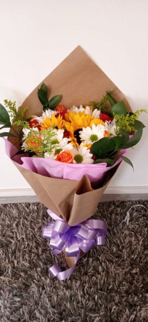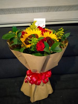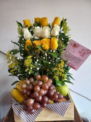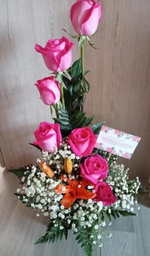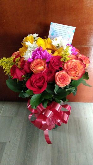 Bouquet 12 rosas y astromelia en jarron de cristal R37